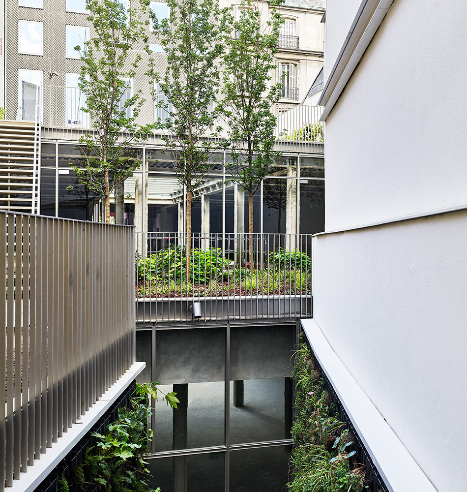 Rénovation d'un immeuble de bureaux (R+6) situé avenue Montaigne à Paris. Le projet vise les certifications HQE et BREEAM LEED. Projet mis en œuvre avec une démarche BIM.