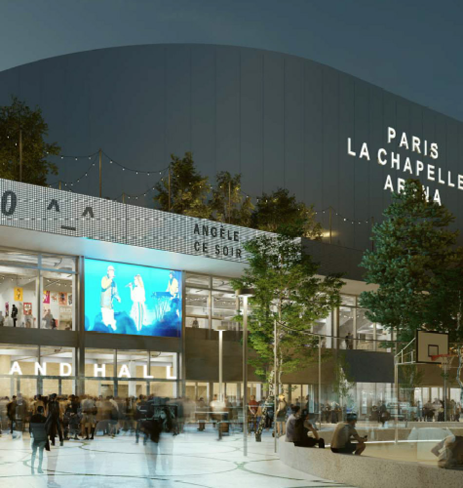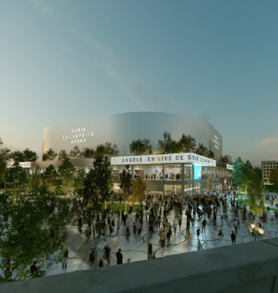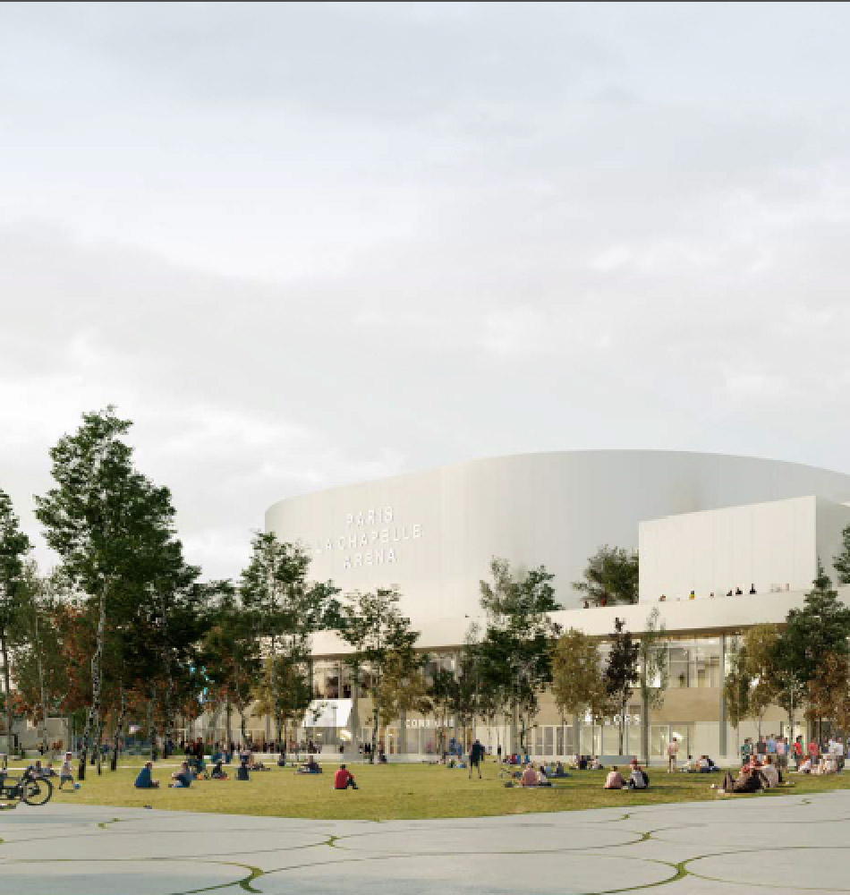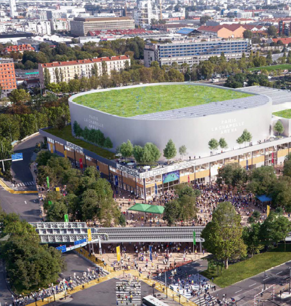 Arena porte de la Chapelle, construction d'un ensemble de salles multifonctionnelles destiné à accueillir de grands évènements (Jeux Olympiques et Paralympiques 2024, concerts et matchs du Paris Basketball...). L'ensemble est composé d'une Aréna principale d'une capacité de 8 000 places pour les grands évènements avec un déambulatoire servant de Hall sur la périphérie de la salle principale, de 2 gymnases pour les habitants du quartier, et d'un espace de 2 500 m² de locaux complémentaires ludo-sportifs et réceptifs.