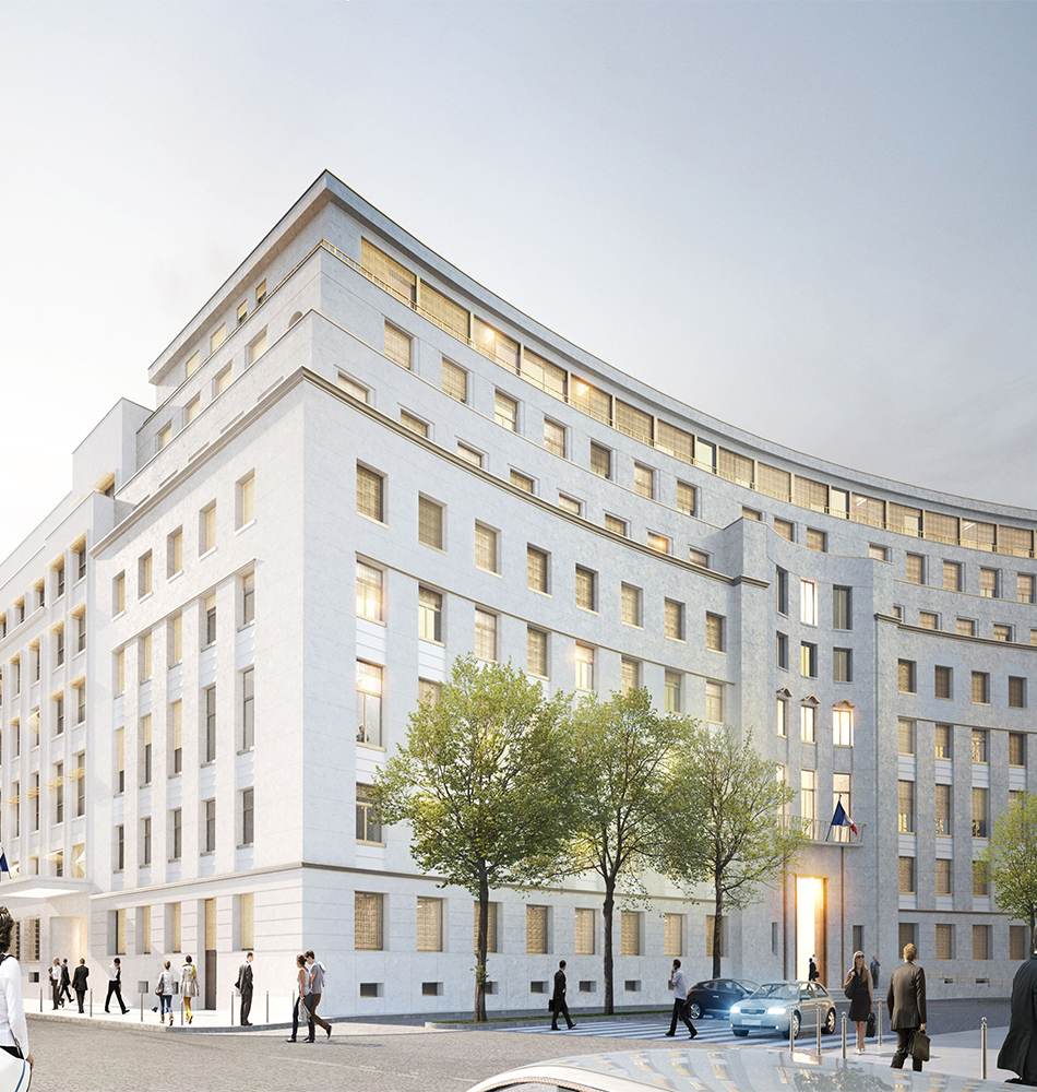 Restructuration d’un ensemble immobilier Ilot Ségur-Fontenoy à usage principal de bureaux. Ce remarquable ensemble immobilier est composé de deux bâtiments construits dans le pur style architectural des années 30. L’immeuble Ségur accueillera les services administratifs, dont ceux du Premier Ministre, et l’immeuble Fontenoy regroupera les Autorités indépendantes. Projet mis en œuvre avec une démarche BIM et récompensé BIM d’Argent dans sa catégorie "Projets en rénovation supérieurs à 40 000 m2". Projet développé dans le cadre d'une procédure publique adaptée de Promotion Conception Réalisation.