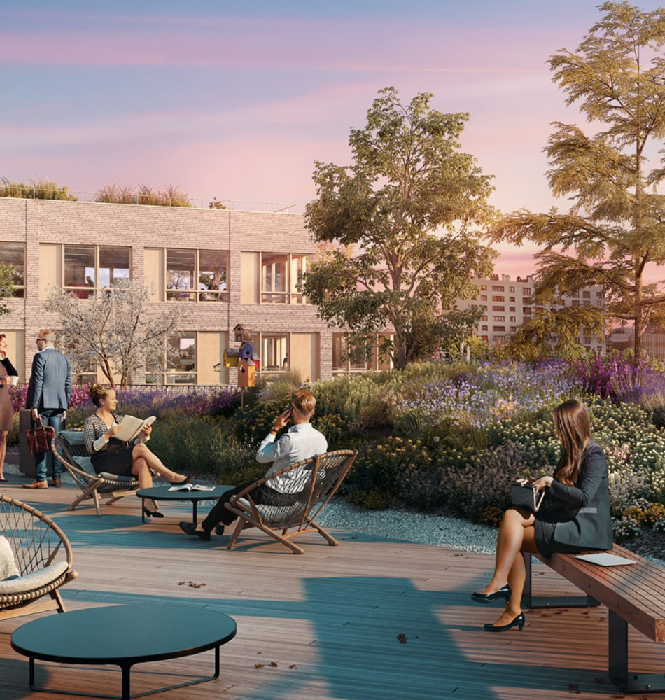 Construction d'un ensemble immobilier comprenant des espaces de bureaux avec possibilité de co-working, une cafétéria, une salle polyvalente, un Business Center, un fitness, des coques commerces. Le projet vise les certifications: BREEAM International New Construction "Excellent", Bâtiment Durable "Excellent.