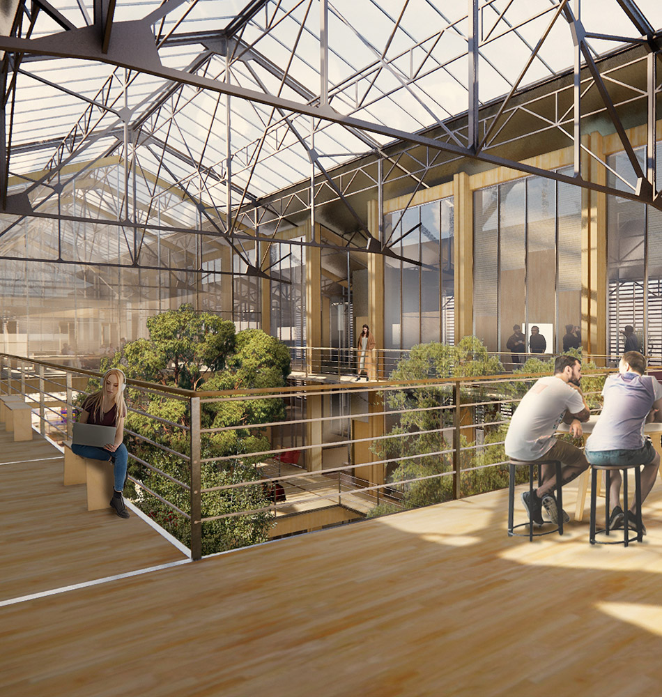 Réhabilitation des Halles de Pantin: 4 000 m² SdP sous serres, 68 500 m² SdP de bureaux, 2 restaurants, 1 auditorium, 1 espaces sport - fitness, espace de co-working, 1 crèche, 1 conciergerie, 1 espace fablab. Le projet accueillera 650 places de parking sur 1 niveau de sous-sol en infrastructure, dont 10% de places pour des véhicules électriques. Le projet vise, à minima les certifications suivantes: RT 2012 - 20 %, Label E3 C1, Certification HQE de niveau « Excellent », Certification BREEAM de niveau « Excellent », Certification WELL Core and Shell.