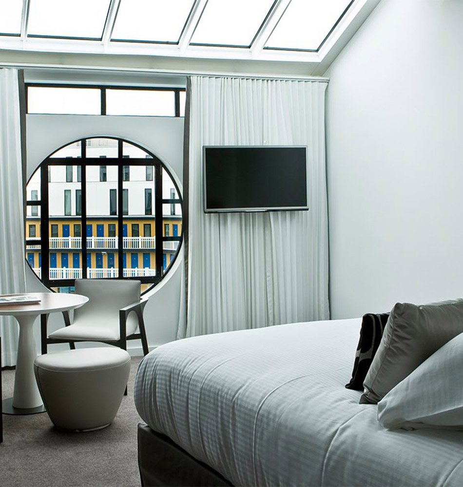 Rénovation, restructuration et extension de la piscine Molitor, incluant : un bassin couvert, un bassin découvert, un hôtel ***** de 124 chambres, un centre de santé active (CSA), un SPA et un restaurant Hôtel Accor « M Gallery ». Projet développé dans le cadre d'un bâtiment classé avec une surélévation contemporaine.