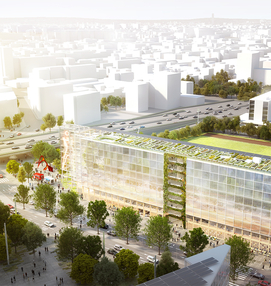 Construction d'un immeuble innovant à usages mixtes : bureaux à la demande, espaces de coworking, résidence hôtelière, toiture agricole, restaurants, lieu festif en terrasse, commerce sans emballage, local de compostage, brasserie de bière locale, espace fitness. Cette plateforme de vie 24h/24 répond à de nouveaux modes de vie décloisonnés et connectés. Le bâtiment est constitué d’une structure bois et de noyaux en béton. Projet conçu dans le cadre de l’Appel à Projets Urbains Innovants Réinventer Paris, mis en œuvre avec une démarche BIM et visant les certifications : BREEAM Excellent, NF bâtiment tertiaire HQE exceptionnel, label Effinergie + / structure mixte bois béton R+8