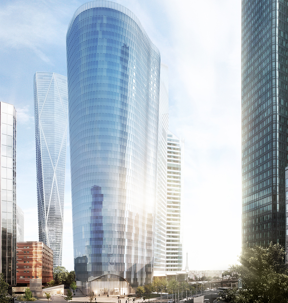 Opération de démolition - reconstruction d'un immeuble de grande hauteur à usage de bureaux (comprenant également un parc de stationnement et des commerces), situé sur le site de l’immeuble des Saisons. Ce projet s'inscrit dans la requalification et l'aménagement d’espaces urbains avec notamment la création de la future place d'Alsace. Démarche NF Bâtiments Tertiaires – Démarche HQE 2011, BREEAM Europe Commercial 2009 - niveau Excellent. Opération dans le cadre de l'entreprise générale (Bouygues Bâtiment Ile-de-France - mandataire). Projet mis en œuvre avec une démarche BIM.