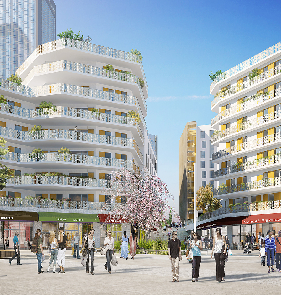 Création d'un ensemble immobilier comprenant des commerces, logements, une résidence étudiante, un hôtel de 108 chambres environ et un parking public de 200 places. Le projet vise les certifications NF Habitat HQE pour les logements et: BREEAM « Very Good » pour l’hôtel et commerces.